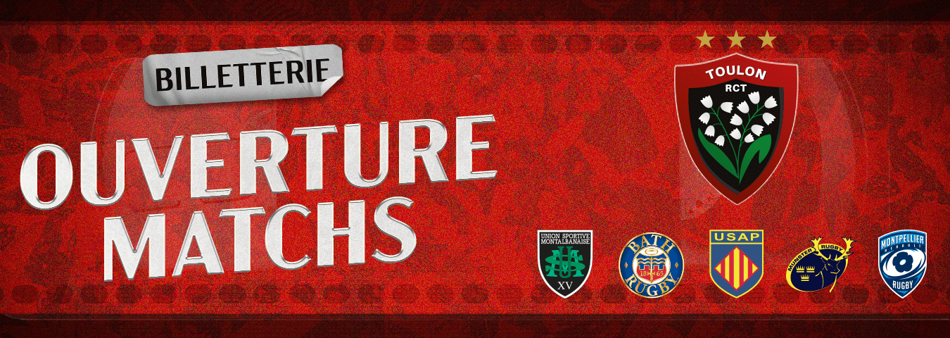 Les places pour Toulon – Montauban, Toulon – Bath, Toulon – Perpignan, Toulon – Munster et Toulon – Montpellier sont disponibles dès maintenant sur la billetterie officielle du RCT en cliquant ICI