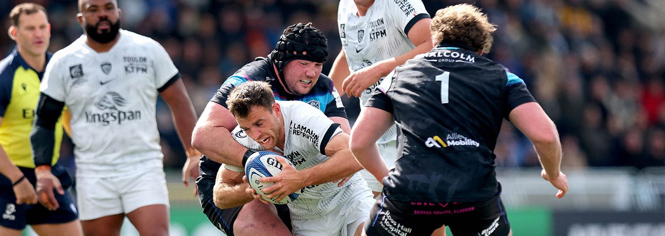 Dans une ambiance hostile, les Toulonnais ont parfaitement résisté à l’entame écossaise. Malgré un premier essai de Glasgow, le RCT a rapidement réagi par Gaël Dréan, opportuniste sur son aile. Après un nouveau temps fort, Jean-Baptiste Gros a permis aux Rouge et Noir de revenir à hauteur, avant que Dréan ne s’offre un doublé juste avant la pause. Toulon virait en tête à la mi-temps (12–17), récompensé pour son réalisme.