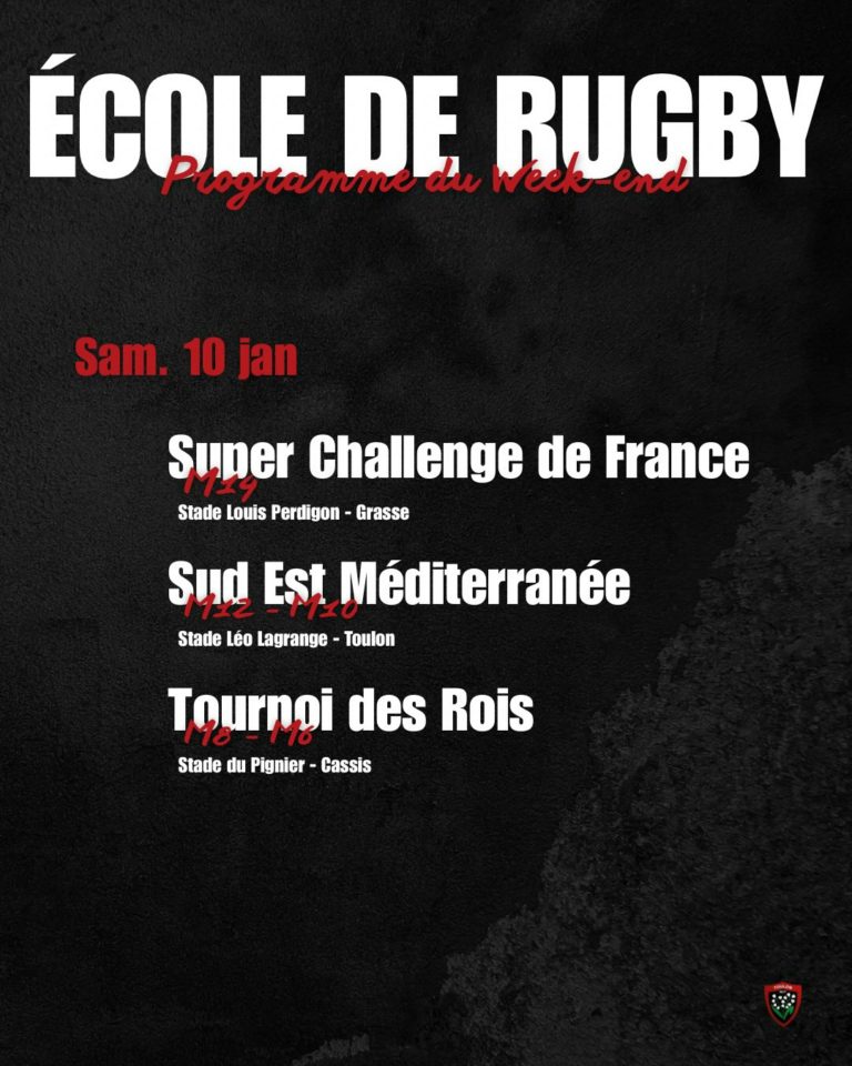 Du côté de l’École de Rugby, les M14 se rendront à Grasse pour disputer la 1ʳᵉ journée de la phase 2 du Super Challenge de France, un rendez-vous important dans leur parcours.