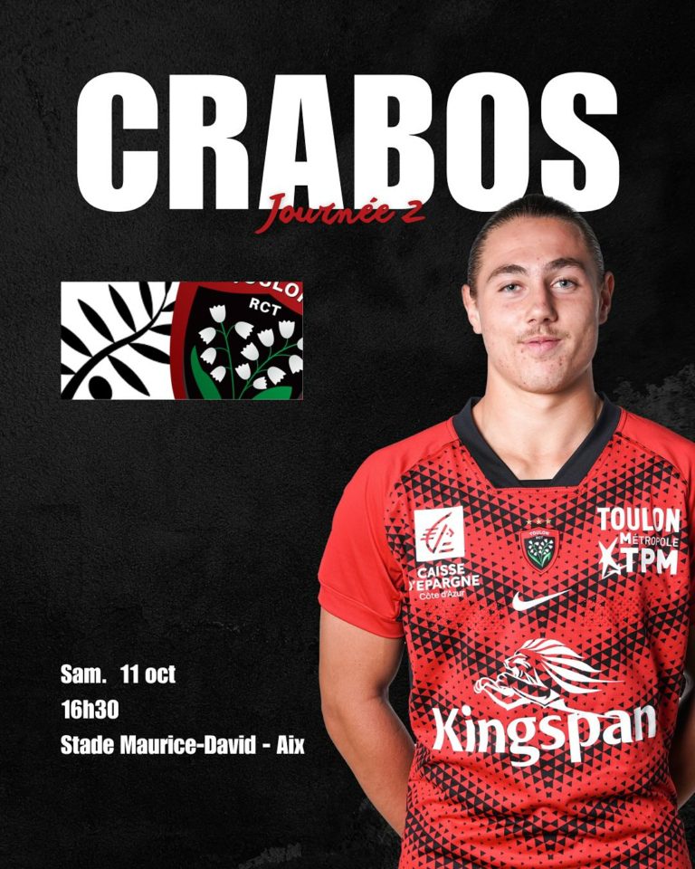 Ce week-end c’est un derby qui attend nos jeunes Crabos. Un déplacement dans les Bouches-du-Rhône à Provence Rugby. Coup d’envoi à 16h30 au Stade Maurice David.
