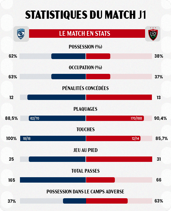 Au terme d’un match maitrisé, le RCT s’impose pour cette première journée du Top 14. Dominants, les Varois ont su prendre l’ascendant sur les locaux dès le début du match.