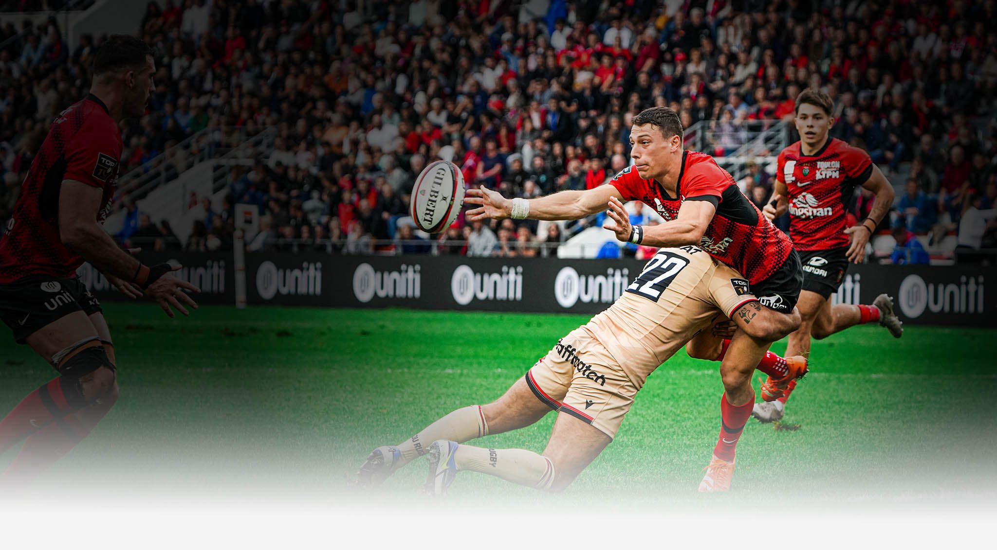 En première période, Toulon a rapidement pris l’avantage grâce à trois essais de Dany Priso, Brian Alainu’uese et Teddy Baubigny, rentrant aux vestiaires avec une avance de 21 à 9.