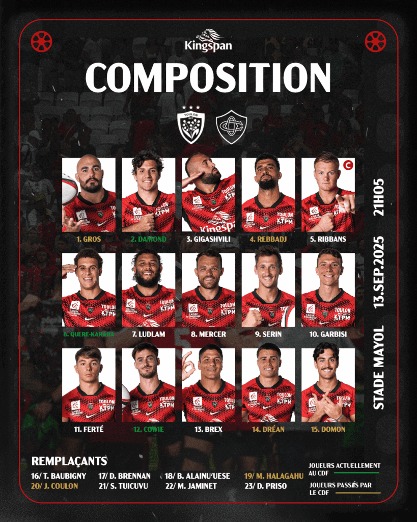 Toulon – Castres (Top 14 – J2) : la composition toulonnaise