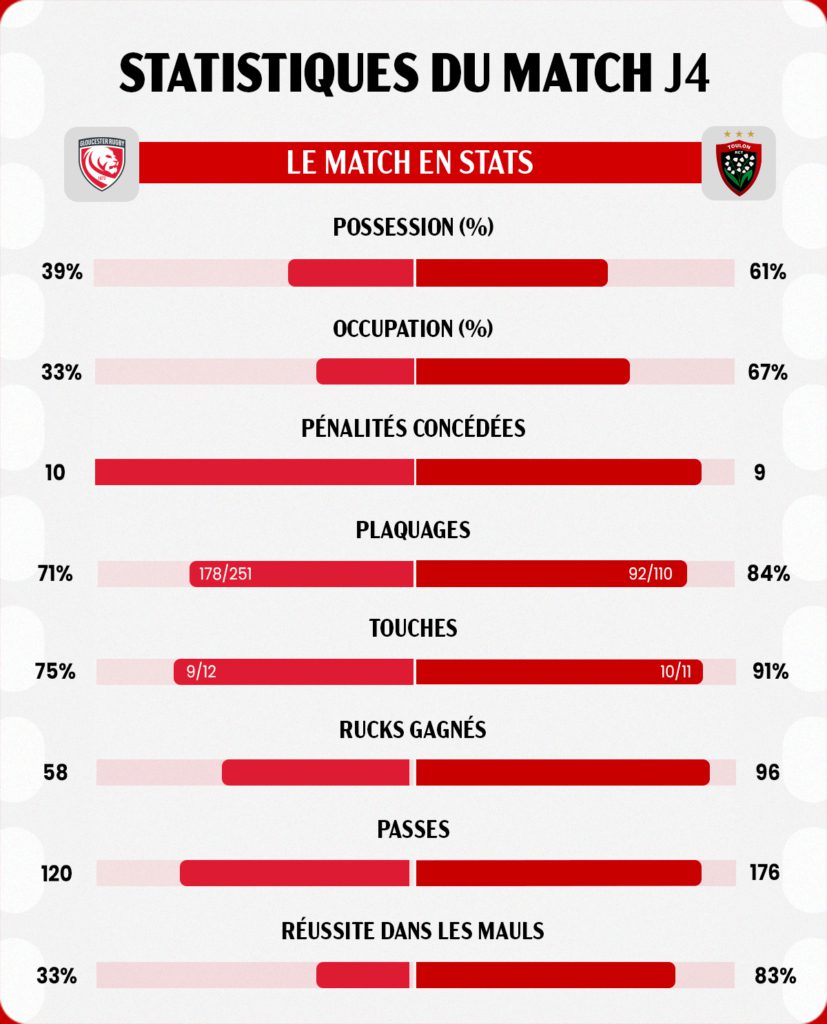 Après une réalisation en contre-attaque de Williams (14-24, 70′), le RCT décroche tout de même le point de bonus grâce au doublé de Dréan sur la dernière séquence du match (14-31, 82’).