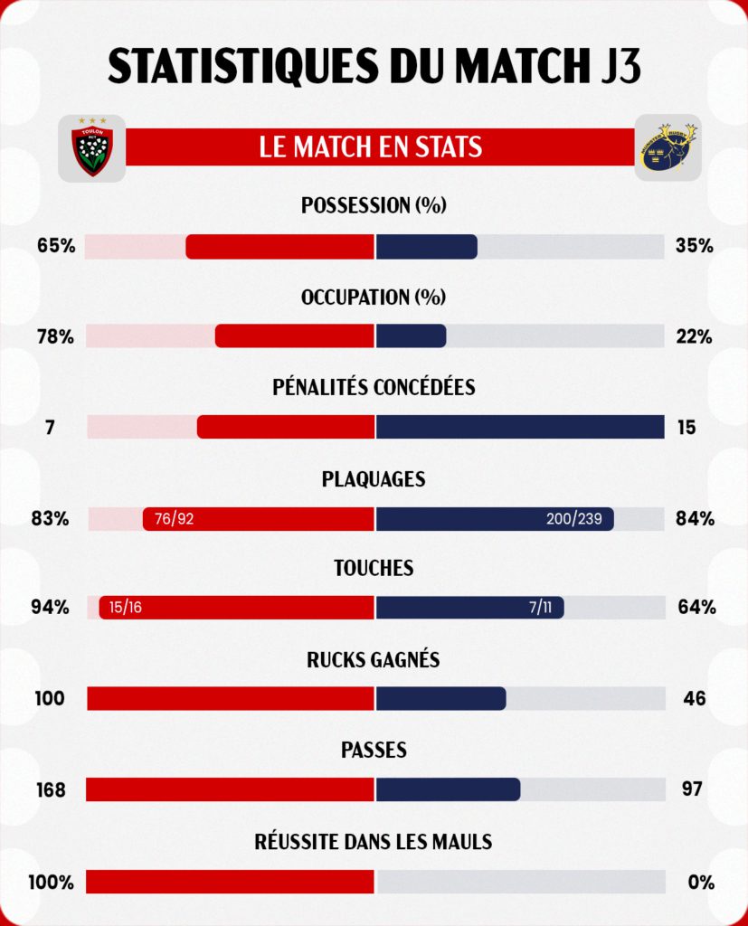 Pour sa première sortie à domicile de l’année, le RCT assure l’essentiel et décroche la victoire face au Munster (27-25). Les Toulonnais prennent leur revanche, deux ans après leur retour en Champions Cup et prouvent qu’ils ont grandi.