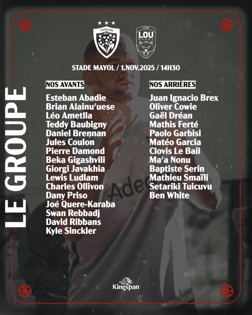 Toulon – Lyon (Top 14 – J9) : le groupe Rouge & Noir