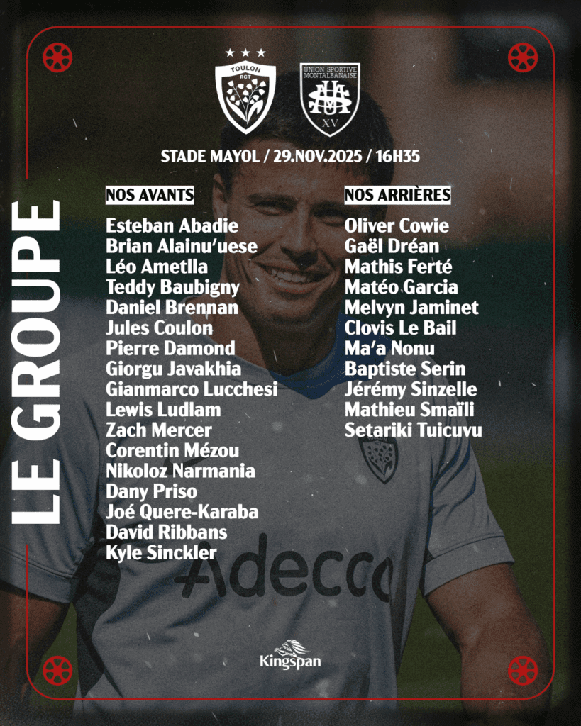 Ce samedi 29 novembre, le Rugby Club Toulonnais reçoit l'US Montauban…