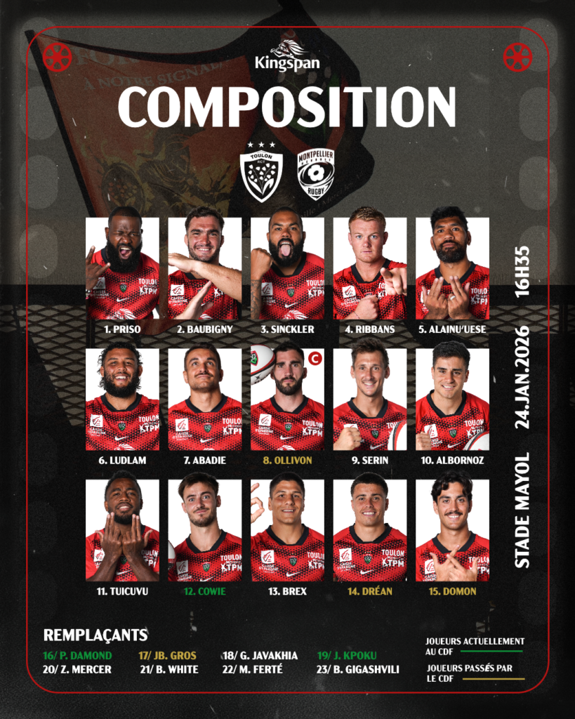 Ce samedi 24 janvier, le Rugby Club Toulonnais affrontera le MHR à 16h35, pour cette quinzième journée de Top 14 !