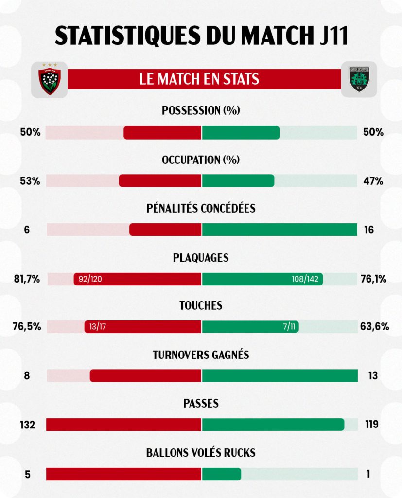 Au retour des vestiaires, Teddy Baubigny marque d’entrée et entretient la dynamique rouge et noire. Montauban réagit ensuite avec trois essais en seconde période, mais l’avance toulonnaise est déjà trop importante. Les Rouge et Noir continuent d’appuyer et Mathis Ferté, élu Toulonnais du Match par les supporters sur l’application mobile du club, signe lui aussi un doublé pour conclure une prestation solide.